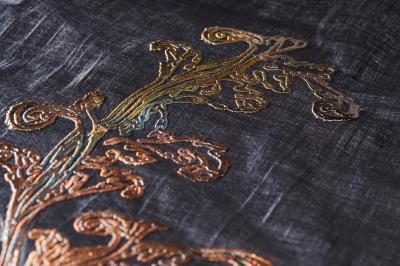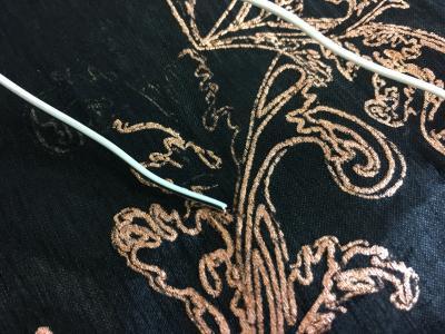 During my creative career I have established a niche in contemporary textile practice by working in an innovative forward thinking interdisciplinary way in line with the historic and modern ethos of artisan inventors, this involves applying new electronics product and conventional electro-metallurgy to textile design. I have conceived a new form of metallic embellishment that is ‘grown not sewn’, bridging the gap between print and embroidery using electric current and copper rather than needle and thread.